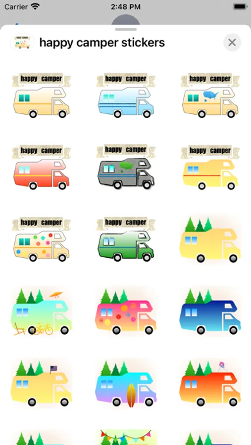 This is a collection of stickers all about the joys of camping. There's nothing like the great camping life, exploring the great outdoors, and seeking adventures wherever the road takes you, hence the term, Happy Camper.