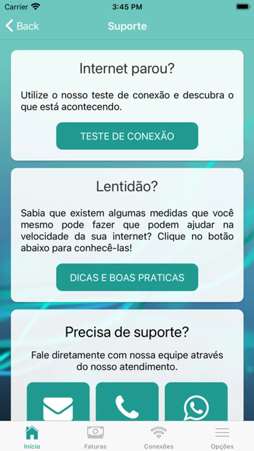 • Realização testes de conexão e velocidade;