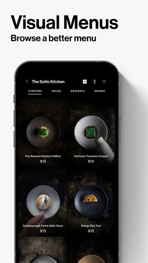 - Gorgeous visuals of dishes so that you compare different options and can see what you're ordering before you send your order to the kitchen. Gone are the days of, "I wish I ordered that!"