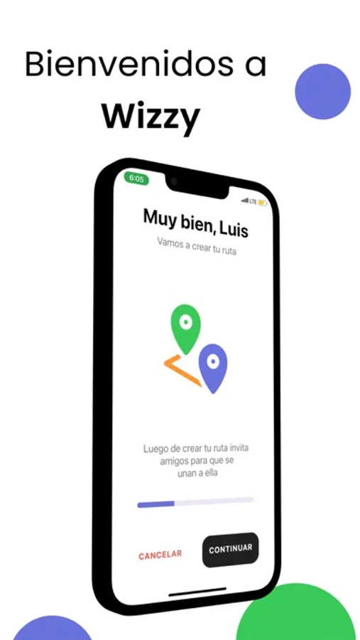 Con wizzy ya no tienes que preocuparte con saber donde se encuentra cada quien a la hora de realizar un recorrido, puedes crear una ruta hacia un lugar favorito o destino de interes , invita tus amigos mediante el link o simplemente enviales el código de 6 digitos y solo con eso podrán verse en tiempo real, estimación de llegada , podrán chatear entre todos, inicia la navegación y que inicie el viaje.