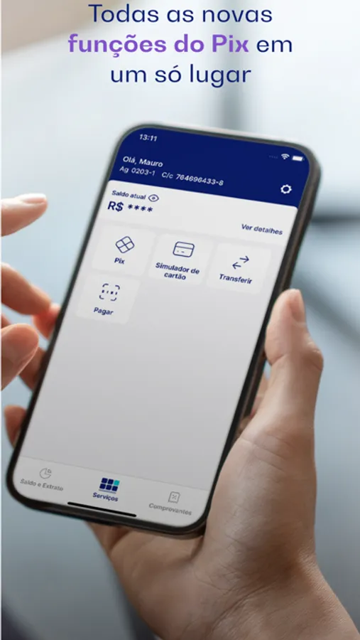 Consulte o saldo atual da sua conta corrente, lançamentos futuros e gerencie seus pagamentos de forma fácil, com poucos cliques.