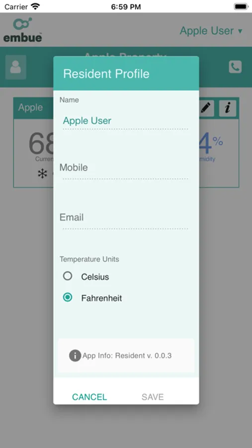 This app allows residents of Embue-managed apartments to control heating, air conditioning, as well as access numerous thermostat features by using a mobile device.