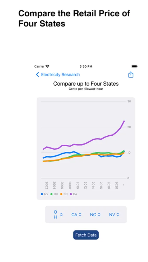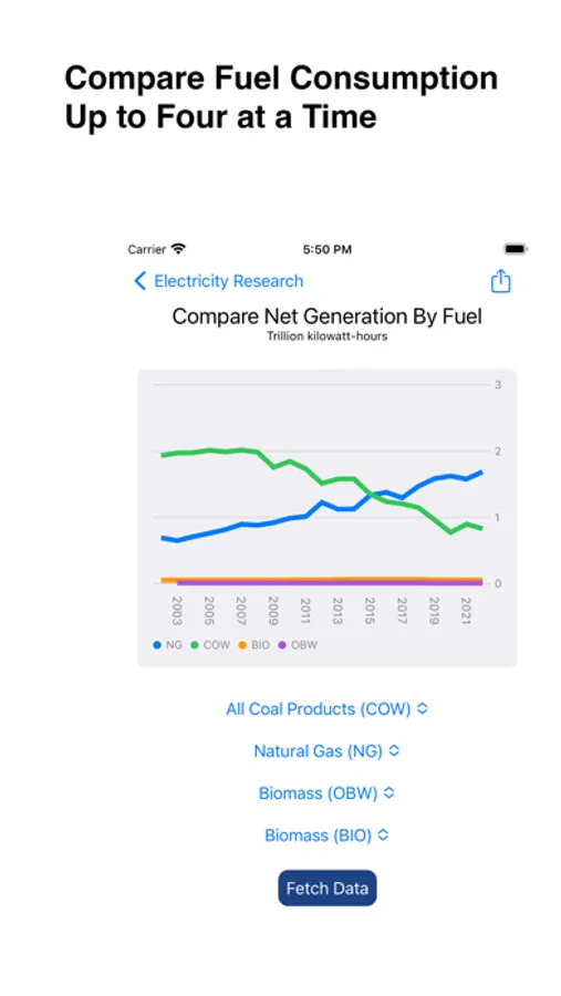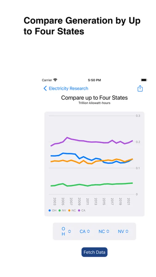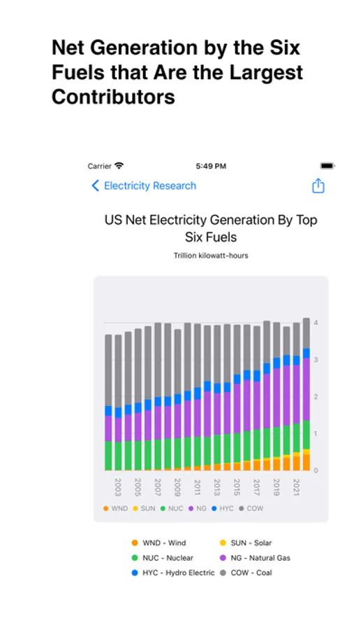 This app provides graphical views of US electricity generation in a variety of formats, including total United States generation over time, generation by source, generation by source by state, current generation demand and more.