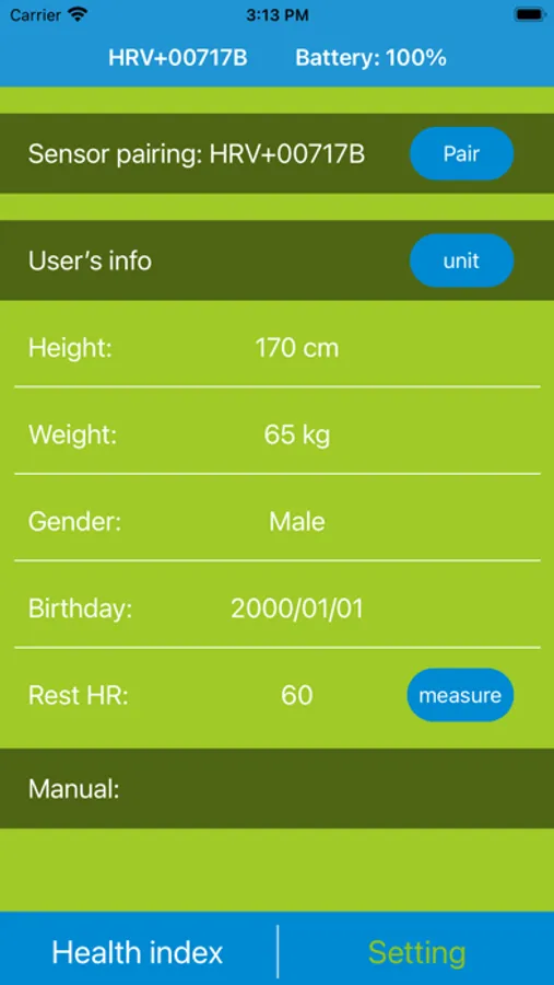 2. The data acquisition of this application requires a Bluetooth Low Energy (BLE) sensor of HRV or ECG125.