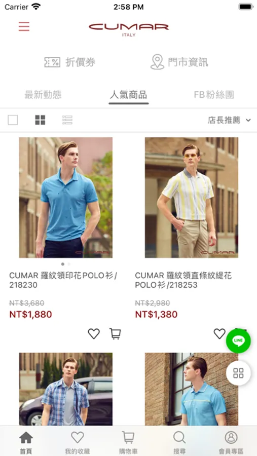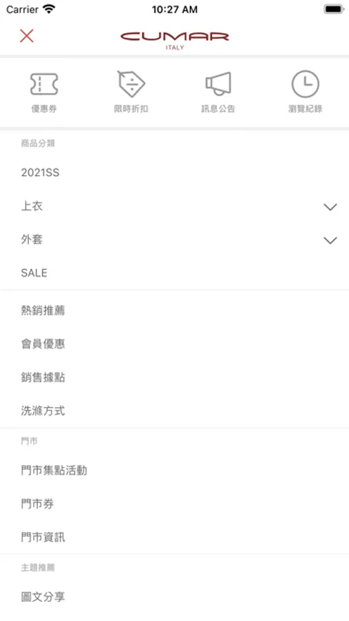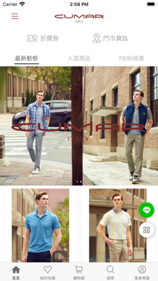cumar休閒男裝官方網路直營APP,趕快下載接收最新商品優惠資訊,領取獨家網路商城優惠券及門市券!