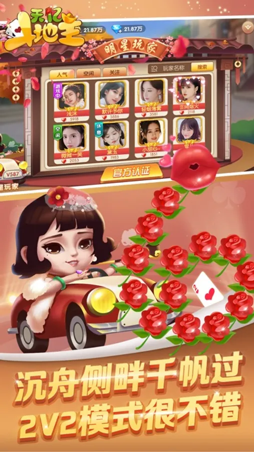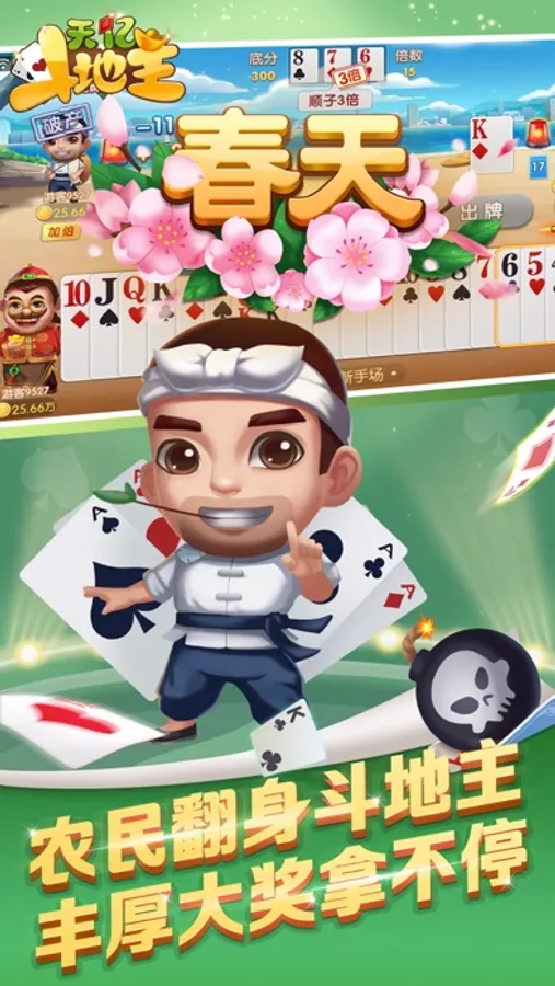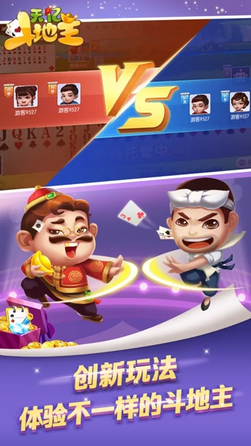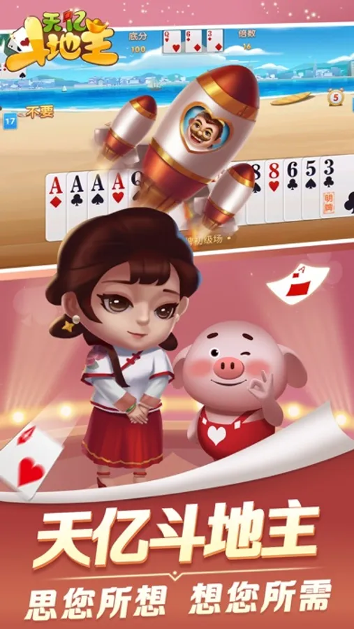天亿斗地主,组队竞技赚钱打比赛!相邀好友大作战,和女神2V2情侣对对碰。各种新玩法,刺激换三张不洗牌 ,明星高手在线实时切磋,许愿打赢排名自主选奖品,也可寻找同城地主玩家一起玩耍!