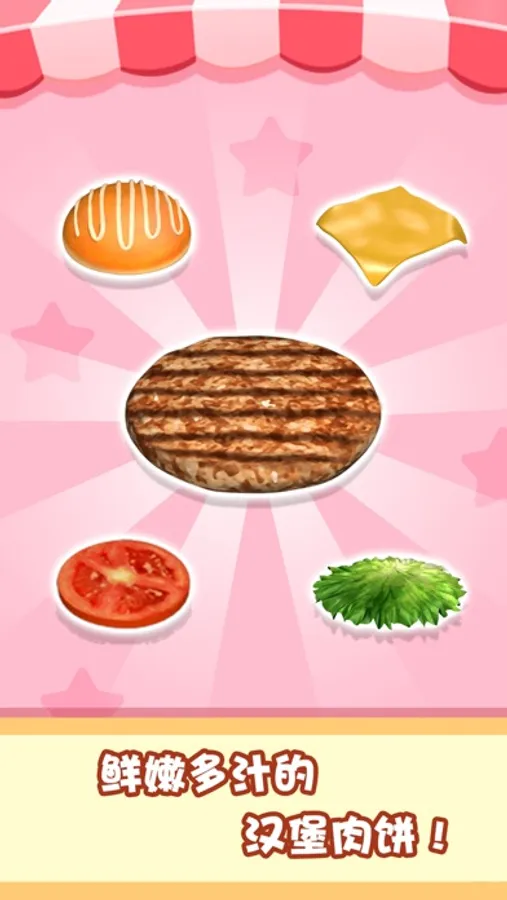 欢迎来到美味的汉堡餐厅!鲜嫩多汁的肉饼!松软可口的面包!丰富新鲜的蔬菜!通过简单的操作搭配出自己喜欢的美味汉堡套餐。让孩子动手成为汉堡美食小达人吧!