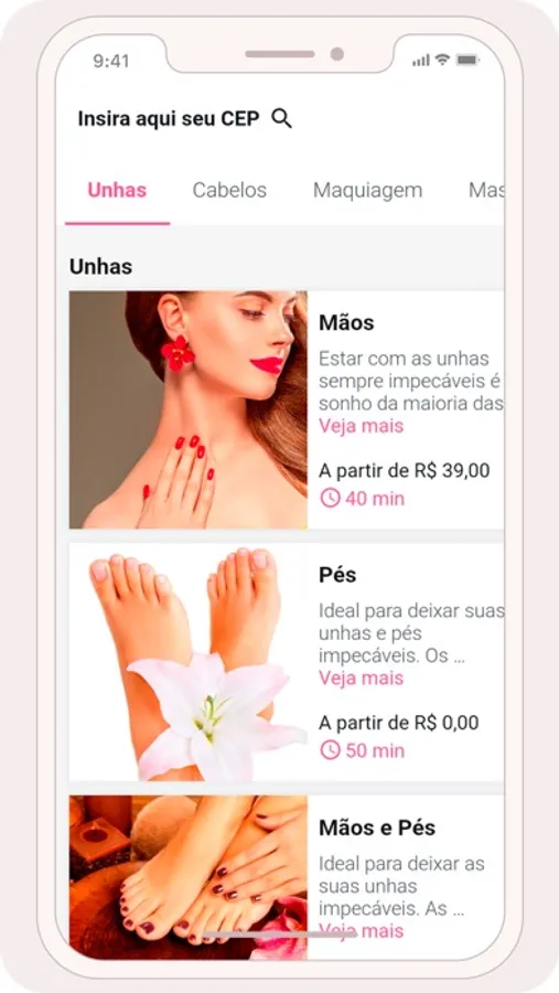 São diversos serviços de beleza, estética e bem estar que você pode solicitar aonde e quando quiser: