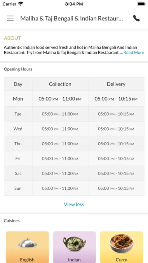 Thank you for visiting Maliha & Taj Bengali & Indian Restaurant in Taunton. We hope you enjoy our online ordering app and your food.