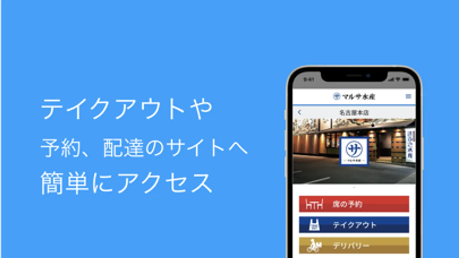マルサ水産各店のテイクアウト注文、デリバリー注文、お店予約サイトへ簡単にアクセス