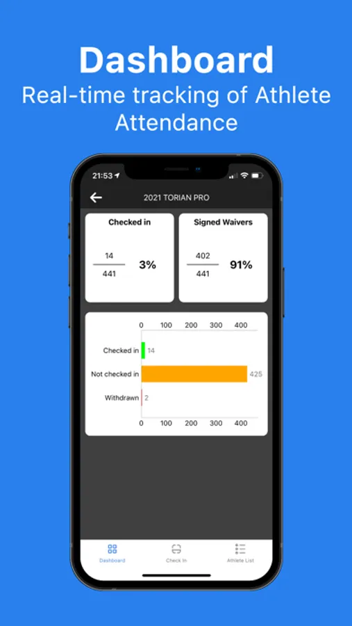 - Rely on easy-to-use athlete check in scanning to give your Athlete's a contact-less entry experience.