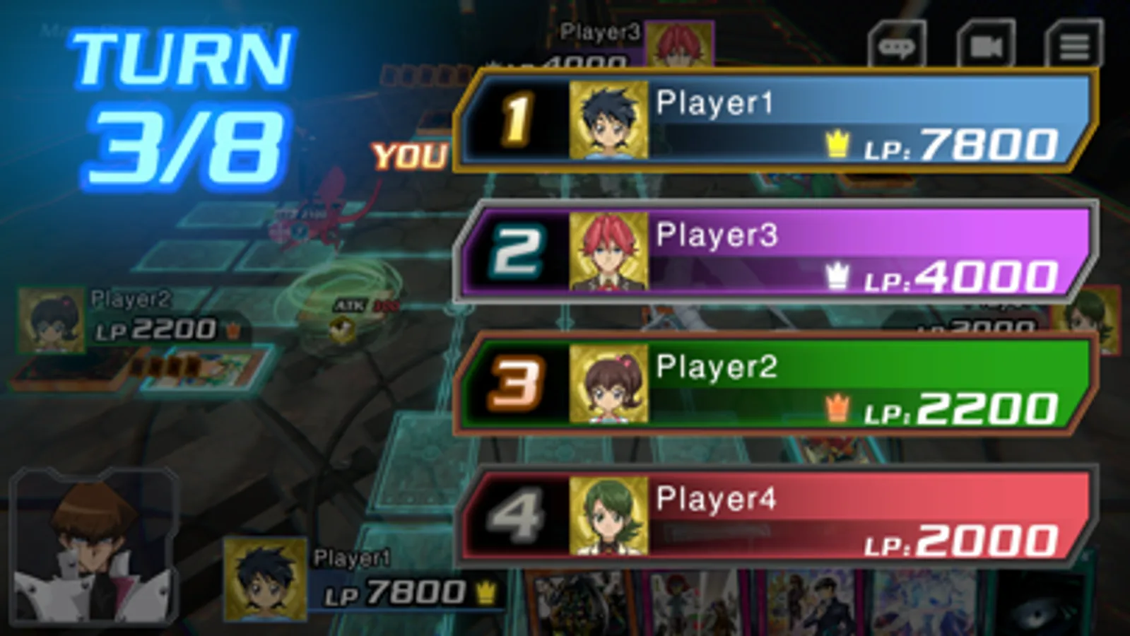 In addition to 4 Player Match Mode, you can play together with characters from the Yu-Gi-Oh! series in Single Player Mode, or head to 4 Player Co-op Mode and team up with other Duelists to overcome a fearsome Raid Boss!