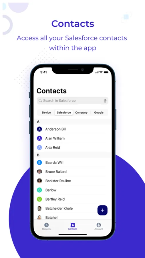 ● Two-way sync with Salesforce ensures all your calls, texts and recordings are logged automatically.