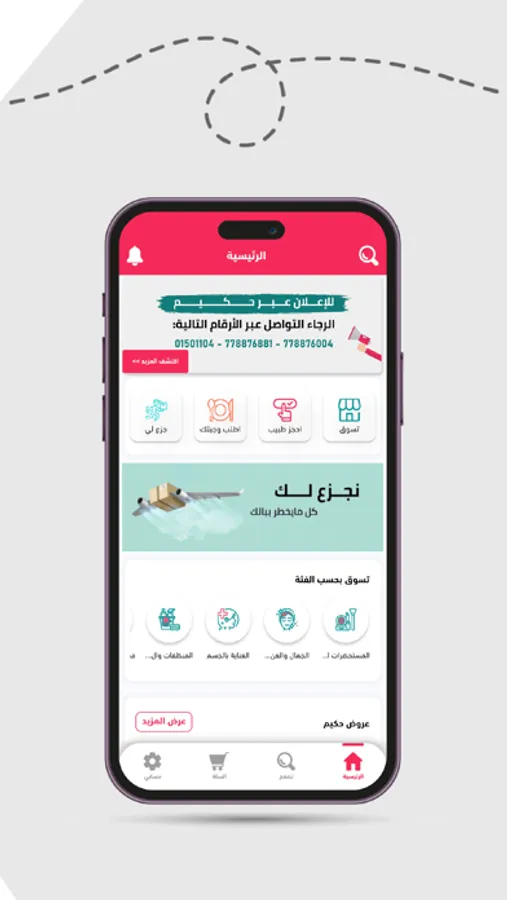 مرحبا بك في منصة حكيم وسيلتك الأولى لجعل حياتك أسهل، مع تطبيق حكيم يمكنك الحصول على كل ما تحتاجه بضغطة زر.