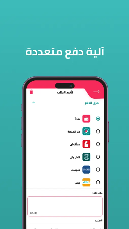 يوفر التطبيق طرق دفع متعددة عبر محافظ إلكترونية وحسابات بنكية بالإضافة إلى طريقة الدفع التقليدية عند استلام المنتج، لتتمتع بخدمة تسوق مريحة مع طرق دفع سهلة وأمنة.