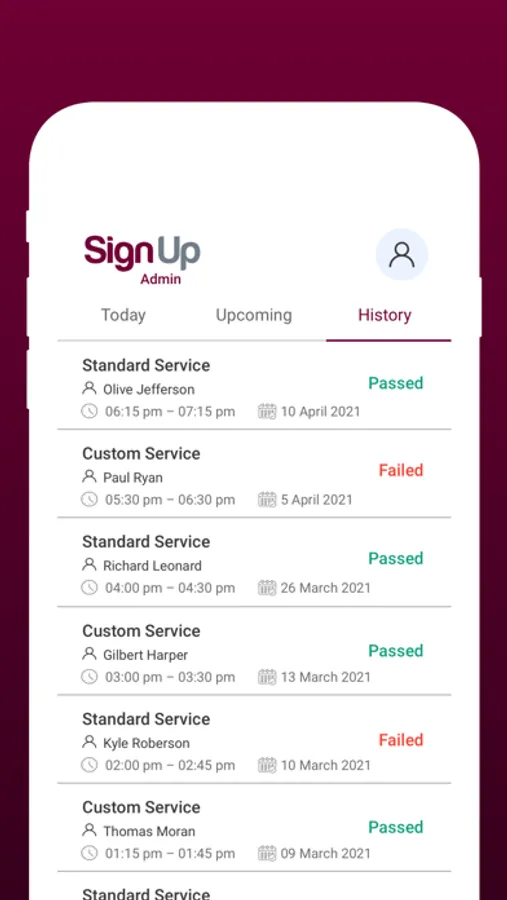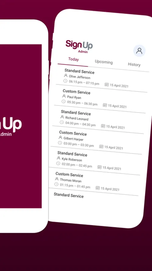 Sign Up Admin app allows the business to easily verify the registered customers upon their arrival and manage their appointments.
