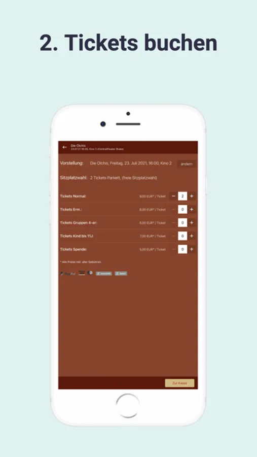 Hier kaufst Du in unter einer Minute Kinotickets für Deinen Lieblingsfilm. Schnell, sicher, einfach und ohne Anstehen an der Kinokasse. Einfach aus dem aktuellen Kinoprogramm Deinen Film buchen und Du erhältst die Tickets einfach & bequem als E-Ticket auf Dein Smartphone und an Deine E-Mail-Adresse.