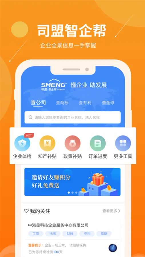 智企帮APP是一款为企业提供信息查询、风险预警及多项增值服务的企业管理工具。
