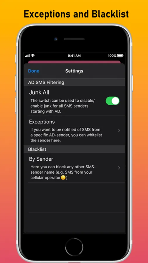 AD SMS Blocker features: