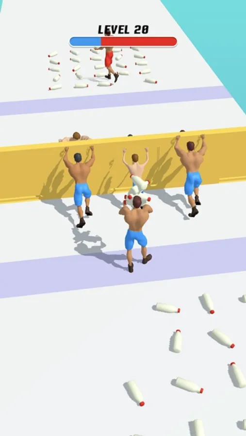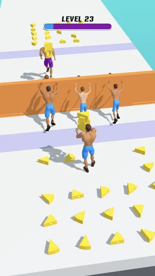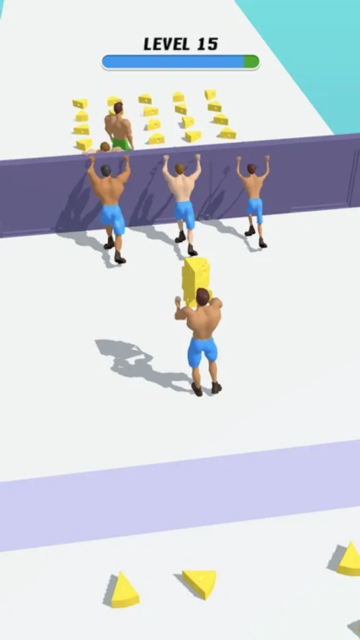 Are you ready for a cutthroat competition? Empower your team by bringing tasty food to them and motivate them to apply more force to the wall they're pushing wildly. The moment you think they can't afford it, you can join them and win by pushing the wall.