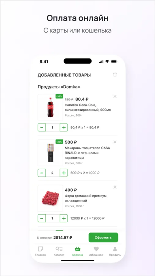 ▸ Готовые блюда и продукты в одном заказе.