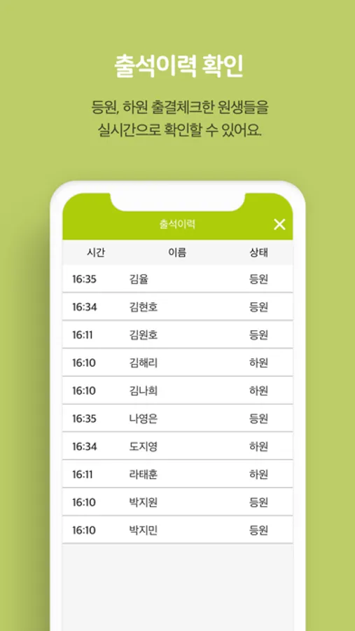실시간으로 원생의 출결(등·하원) 알림을 보내세요.