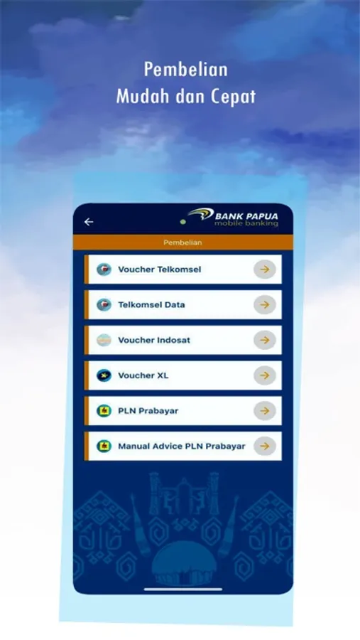 Mobile Banking Bank Papua merupakan layanan perbankan dengan menggunakan fasilitas handphone atau smartphone berbasis aplikasi agar Anda dapat bertransaksi dengan mudah dan cepat serta memiliki tampilan menu yang menarik dan mudah digunakan.