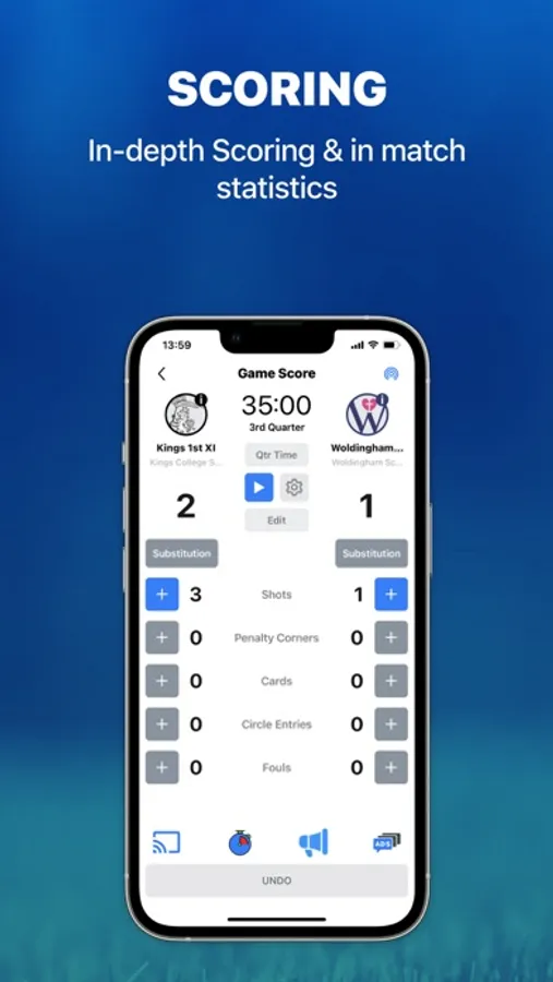 The QS Hockey Pro Scorer App is designed for Quickscore customers to use with the range of Quickscore SMART Scoreboards. The App gives users a dynamic, end-to-end solution when scoring Hockey matches; whereby player profiles, teams, leagues, advertising, layouts, colour schemes and general scoreboard content are all easily managed.