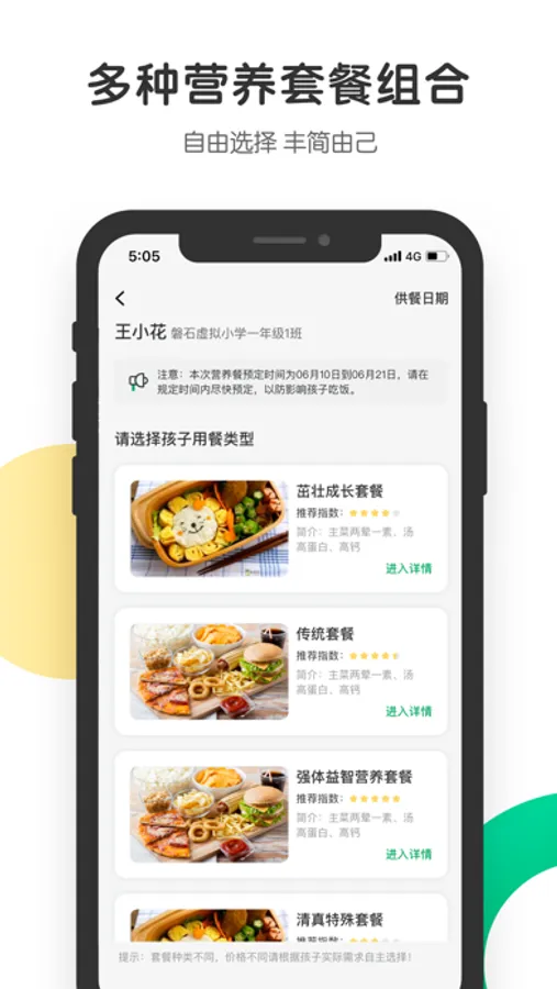 1、学生家长在开心虎APP 上根据需要自主选择套餐,缴费以及退款。