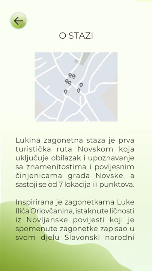 Na svakom punktu, nakon što saznaju informacije vezane za taj dio novljanske povijesti, a prije prelaska na sljedeći punkt, posjetiteljima se postavlja zagonetka. Odgovor svake zagonetke vezan je za sljedeću lokaciju.