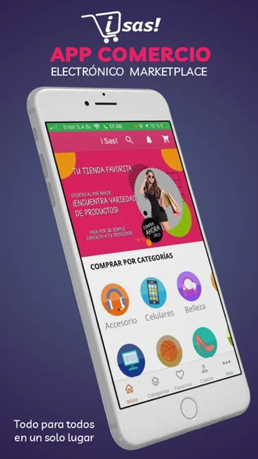 i Sas! es una Aplicación de comercio electrónico Marketplace.