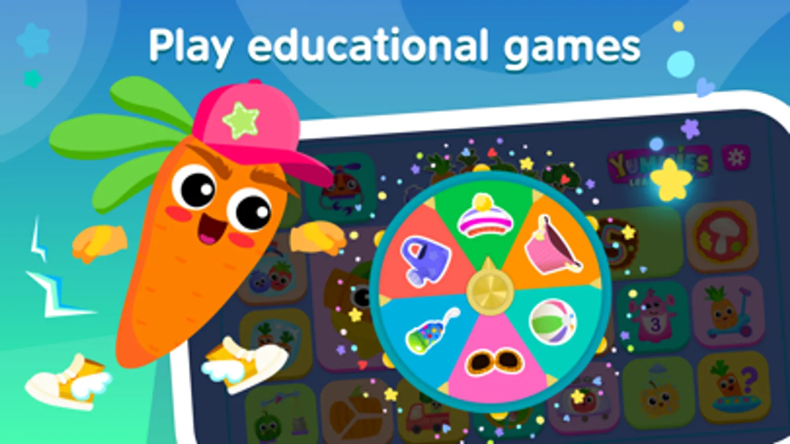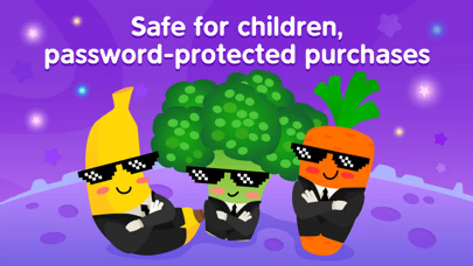 - 55+ cute fruits & veggies interactive characters: Carrot, Strawberry, Pumpkin, Tomato, Broccoli, and others