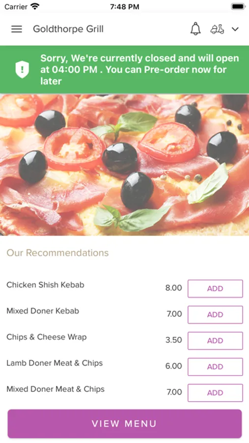 Order food online from one of the finest takeaways in town. Here at Goldthorpe Grill in Doncaster Road, and are proud to serve the surrounding area. We serve a variety of food such as pizzas, burgers, wraps, kebabs and more. You can find our whole menu on our app, filled with mouth-watering dishes and catering for all kinds of different tastes!