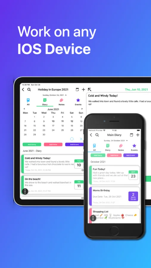 - Create Multiple Diaries. You could have one diary for work, or home, a diary to capture everything that happened on holiday, or a diary to keep specific project info.