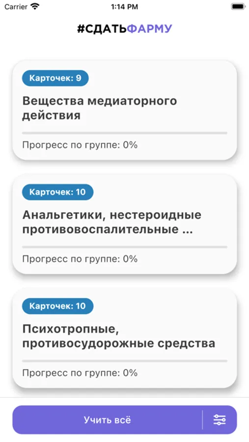 Запомни карточки, переверни их, проверь себя, повтори! Отслеживай прогресс и сдай фарму.