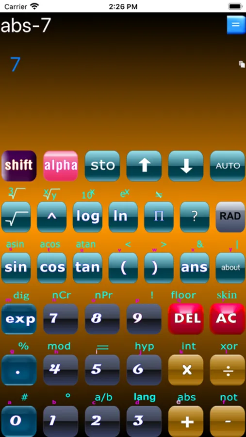 It supports algebraic, logarithmic, exponential, tringonometric and inverse logic functions.