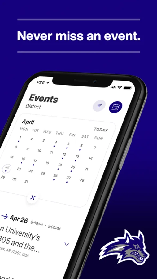 The event section shows a list of events throughout the district. Users can add an event to your calendar to share the event with friends and family with one tap.