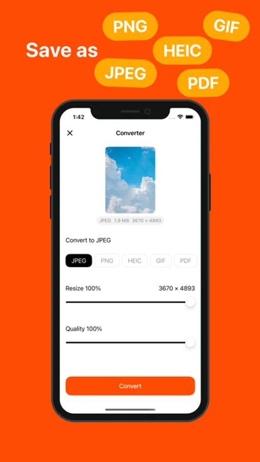 Conversion is done locally, which makes conversion easier, faster, battery-friendlier, and much more secure. Files never leave your device, so you don’t even need an internet connection to use this app.