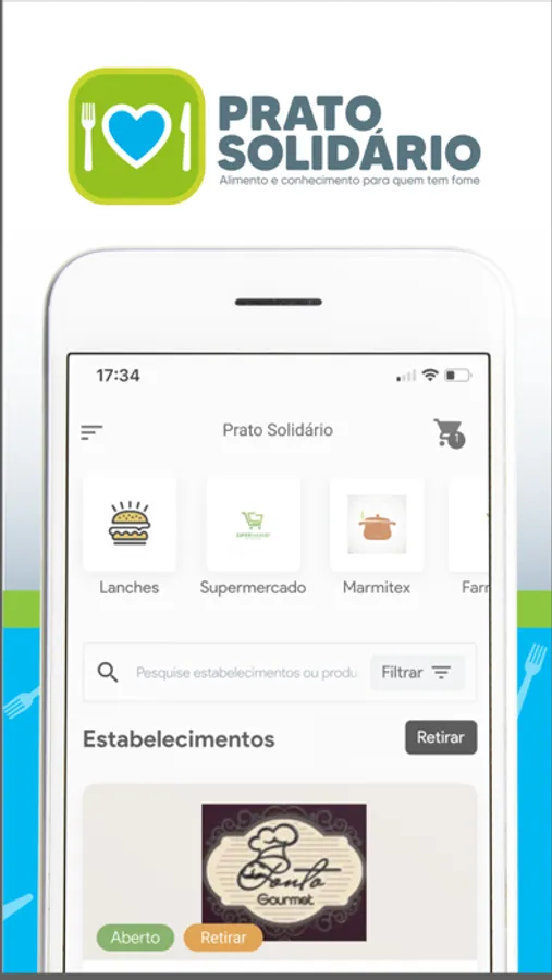 Baixe o aplicativo para fazer parte do Projeto Prato Solidário. Este aplicativo é focado em organizações voluntárias, ONGs e similares que distribuem comida para comunidades carentes.