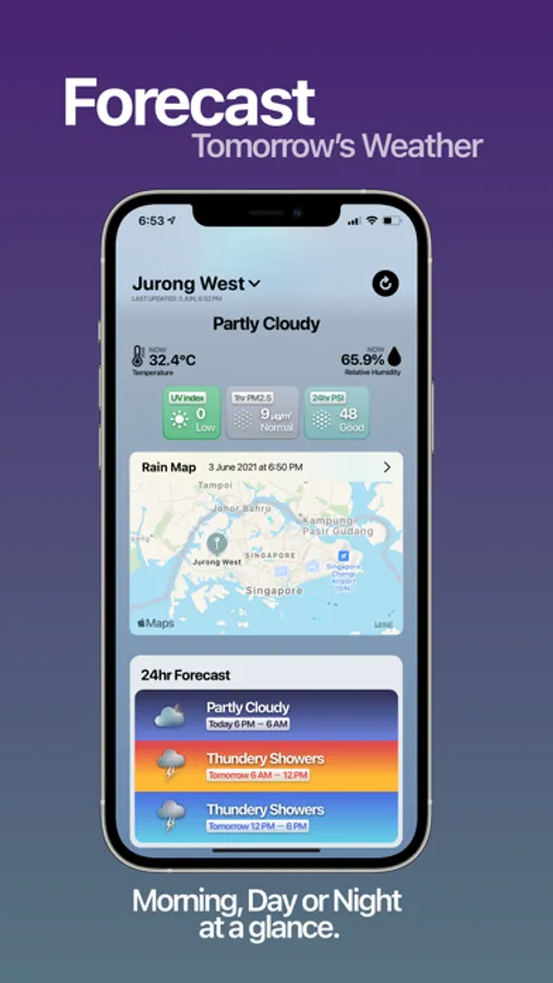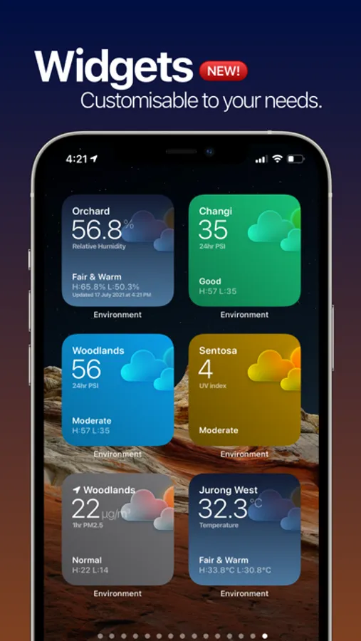 View the latest PM2.5, PSI, UV index, temperature or humidity with weather forecasts, directly on your Home Screen and Lockscreen. Each widget can be set to display a weather condition reading such as the temperature, of a specific place, which you had added in the app.
