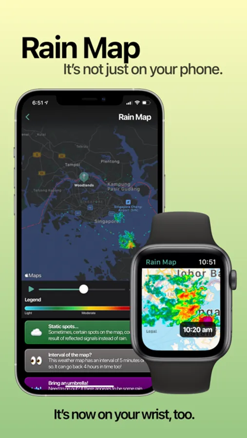 You can view up to 2 hours of rain map data on the watch by spinning the Digital Crown, or up to 4 hours of rain map data on your phone.