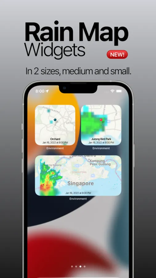 Furthermore, you can add mini rain maps on your Home Screen with the Rain Map Mini widget. Select a location to get a zoomed in focused map that shows only the rain condition that matters to you, or show rain condition for the entire Singapore. You can also customise whether to show a pin on your selected location, the colour of the pin, and other details.