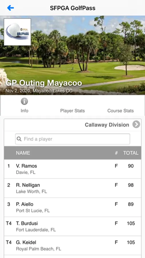 • Check in to events, and use GPS to let event staff see your location on the course while you play.