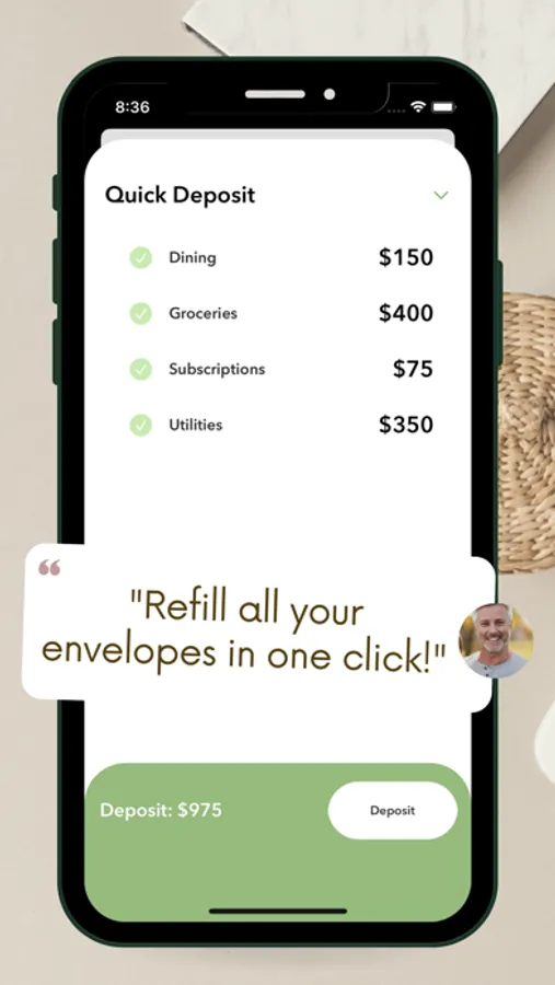 • Quick deposit refills all of your envelopes in one click (you can choose whether to exclude envelopes from this feature)