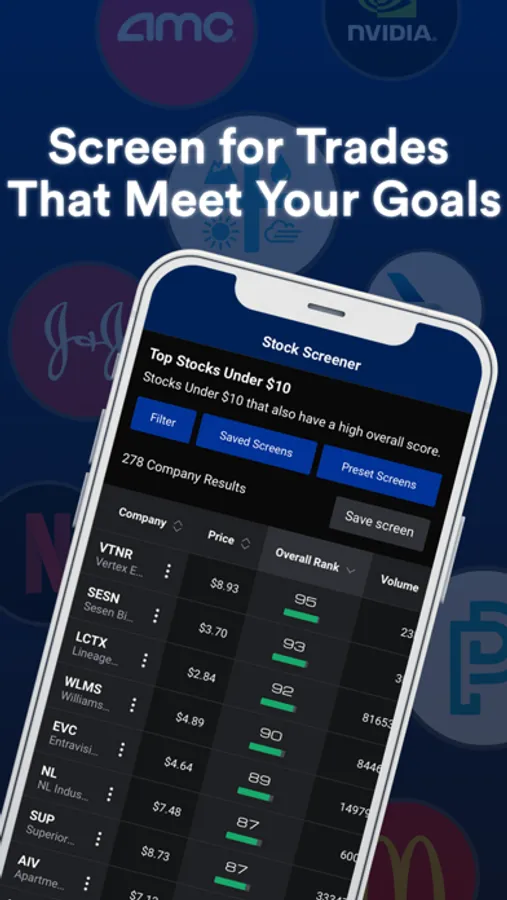 • Screen from over 11,000 stocks to narrow it to the ones that meet your personal criteria