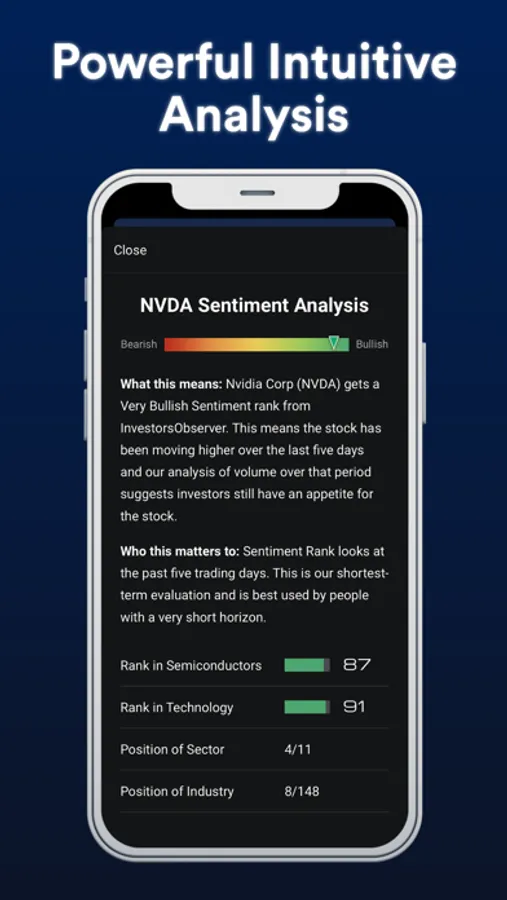 Don’t get lost in the weeds. You don’t have to read analysts reports, study charts or pore over financials to get complete stock analysis. The IO App does the heavy lifting and presents you with elegant infographics, relevant personalized news and super powerful and instinctive tools.