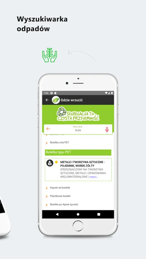 - wyszukiwarkę odpadów podpowiadającą jak prawidłowo segregować odpady,