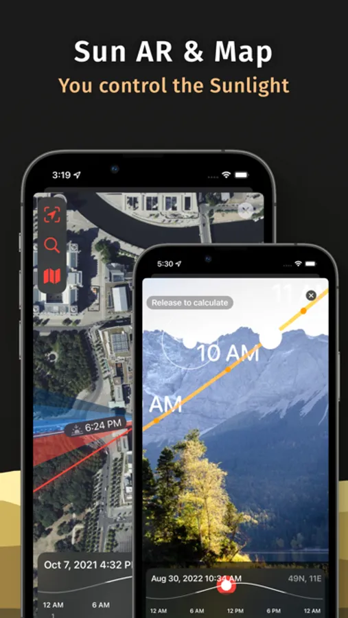 light&depths sun calculations help you with all the information you need about the sun’s location and light. Simply tap right in the AR view to find out when the Sun will hit that perfect spot. Plan ahead by changing the location and time, to find that perfect sunset photo spot. Calculate times for the golden hour, sunset and sunrise, and civil, nautical, and astronomical twilight. See where the sun will shine with beautiful visualizations and map overlays.