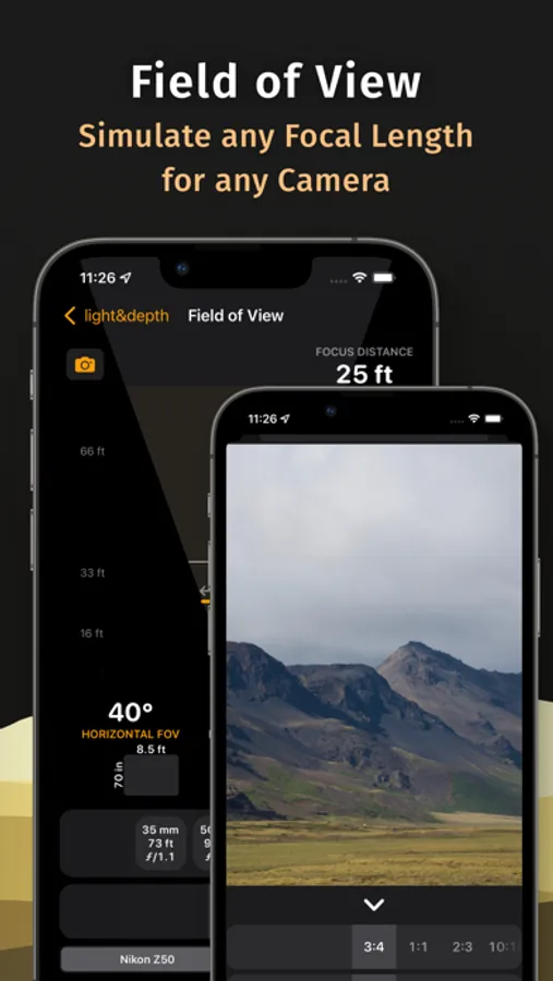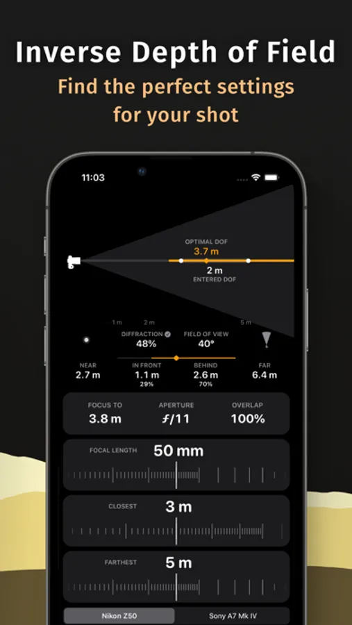 light&depth’s interface was designed to bring you all the information you need, as quickly and intuitively as possible. After all, we want you to focus on your photography, not on entering values and performing calculations in your head.