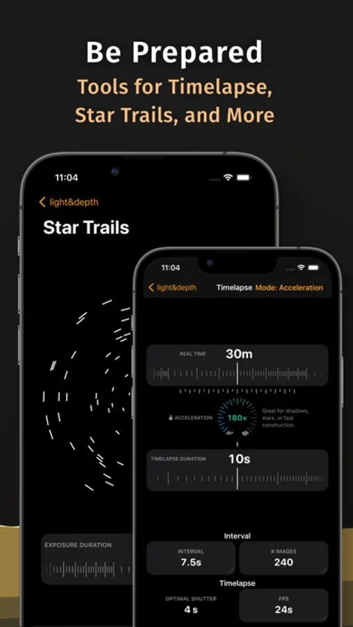And that‘s not all! light&depth has more tools and utilities that help your photos and videos to shine, with a timelapse calculator and a star trail visualizer. All calculations are performed live and changes are immediately visible. We’re already working on even more additions, so stay tuned.
